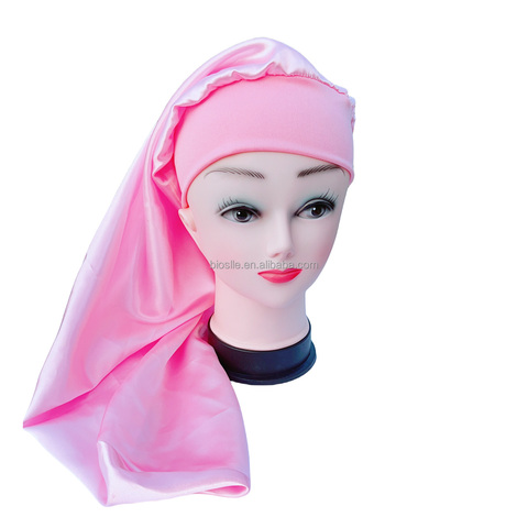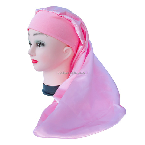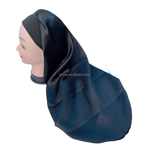 Kunden spezifische Logo Edge Wraps Braid Luxus Seiden haar Doppels chicht verstellbare Seiden haar haube Langer Hut